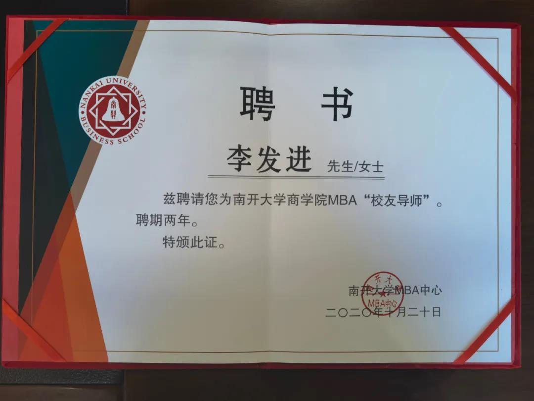 導(dǎo)讀:熱烈祝賀!社科賽斯考研總經(jīng)理李發(fā)進(jìn)先生獲聘南開大學(xué)商學(xué)院MBA“校友導(dǎo)師”,聘期兩年!