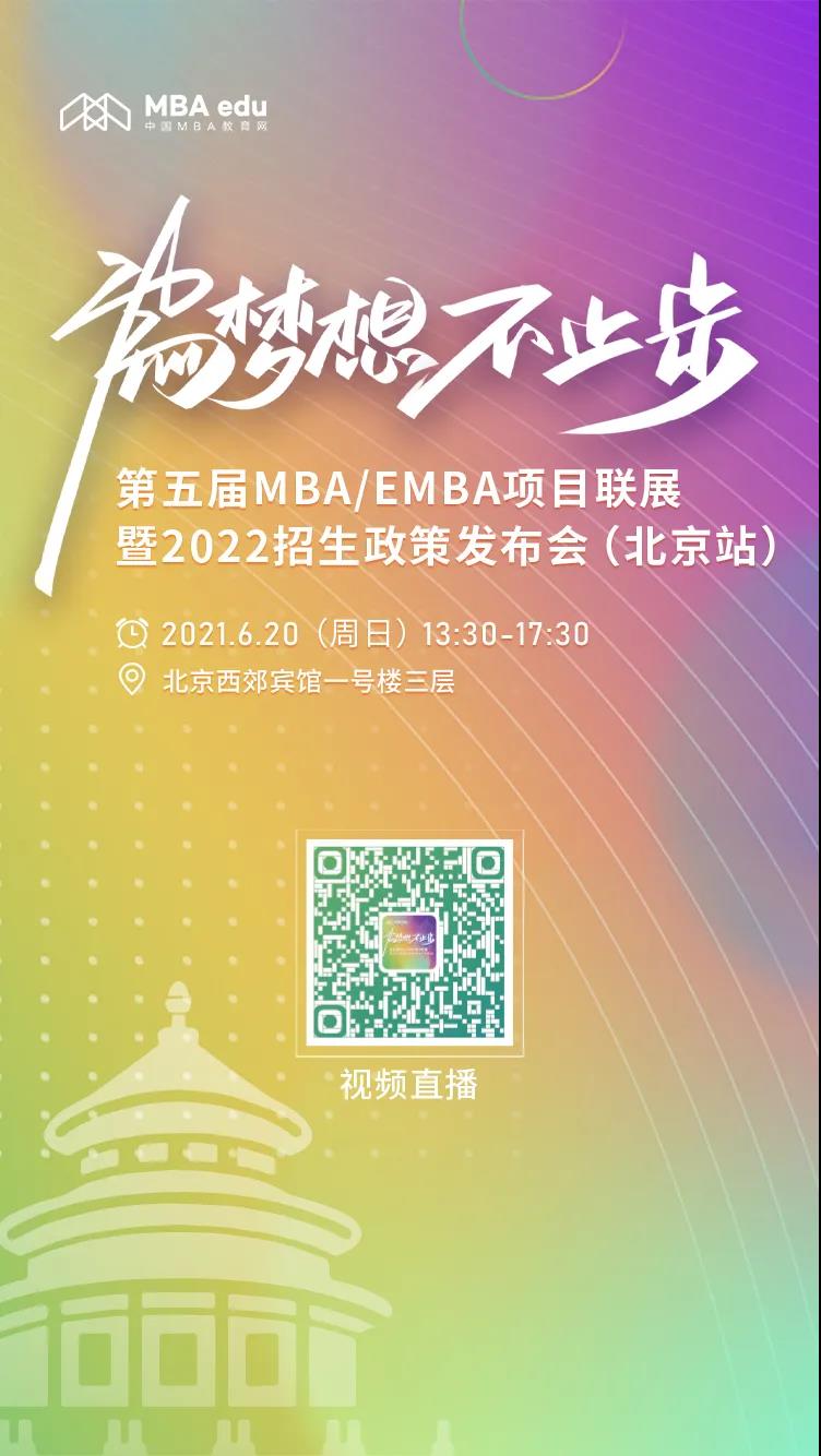 各位讀者大家好,第五屆MBA/EMBA項目聯(lián)展暨2022招生政策發(fā)布會(北京站)將在6月20日(今天)中午13:30準時開始開播,請大家可以提前15分鐘進入直播間,調(diào)節(jié)手機音量至合適狀態(tài),觀眾發(fā)言可以在評論區(qū)進行。