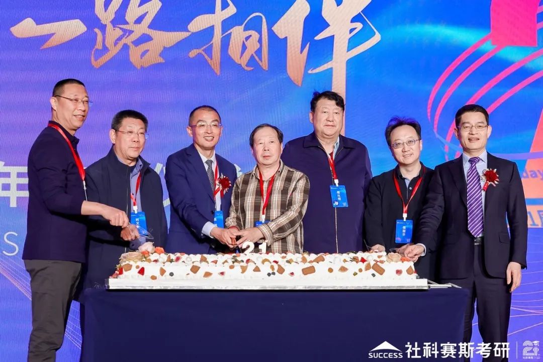 最后,在全場(chǎng)倒數(shù)下,社科賽斯考研董事長(zhǎng)甄誠(chéng)先生、社科賽斯考研總裁、黨支部書記李發(fā)進(jìn)先生和各位與會(huì)領(lǐng)導(dǎo)上臺(tái),共同切下蛋糕為社科賽斯成立21周年慶生,將活動(dòng)推向高潮。