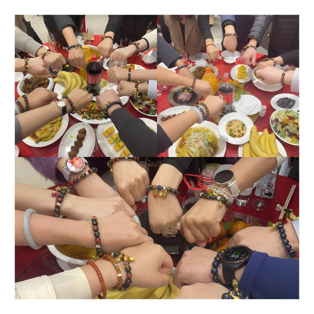 開餐前,最令人期待的環(huán)節(jié)如期而至——劉春茶校長親手將上午在雍和宮請回的開光手串進行了簡單介紹,并安排幾位咨詢顧問老師送到每一位學員手中。“這串手串帶著雍和宮的祈福,更帶著社科賽斯的祝福,希望它能陪你們安心走進考場,發(fā)揮出最好的水平。”劉校長的話語樸實而有力量,接過手串的學員們臉上都洋溢著感動與信心。