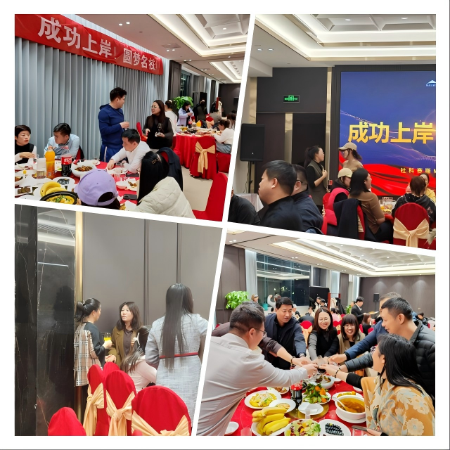 聚餐期間,劉春茶校長與公司銷售老師們逐桌向?qū)W員敬酒,親切詢問大家的備考情況,耐心解答疑問。推杯換盞間,沒有距離感,只有“一家人”的親切與溫暖。