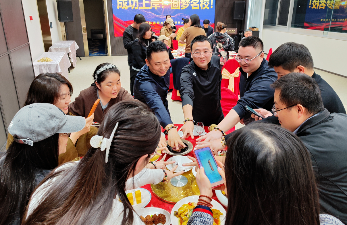 如果說上午的祈福是“隔空傳力”,那么晚上的六天營EMBA、MBA學員圓桌聚餐,便是把關(guān)懷直接送到學員身邊。當天下午下課后,學員們陸續(xù)到場,熟悉的身影、親切的交流,讓整個聚餐現(xiàn)場暖意融融。