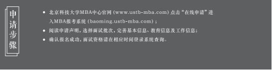 確實,我們每個人面對未知的事情,內(nèi)心的恐懼會加速。但是如果你知道了整個面試流程的時候會不會減少這種陌生感呢?北京科技大學(xué)MBA2018年提前面試的面試流程和面試規(guī)則,社小編分享給你: