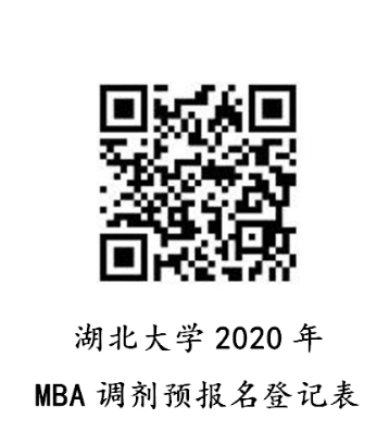 符合調(diào)劑條件的考生掃下面的微信二維碼填寫《湖北大學2020年MBA調(diào)劑預報名登記表》