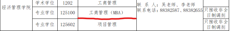 6. 第一志愿報(bào)考工商管理、公共管理、旅游管理、工程管理、會(huì)計(jì)、圖書(shū)情報(bào)、審計(jì)專(zhuān)業(yè)學(xué)位碩士的考生,在滿(mǎn)足調(diào)入專(zhuān)業(yè)報(bào)考條件的基礎(chǔ)上,可申請(qǐng)相互調(diào)劑,但不得調(diào)入其他專(zhuān)業(yè);其他專(zhuān)業(yè)考生也不得調(diào)入以上專(zhuān)業(yè)。