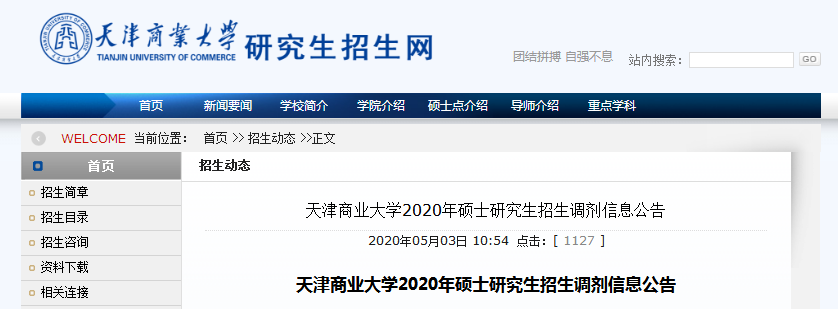 原標題:天津商業(yè)大學2020年碩士研究生招生調(diào)劑信息公告