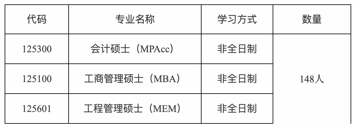 非全日制專(zhuān)業(yè)型碩士分別按會(huì)計(jì)碩士、工商管理碩士、工程管理碩士總成績(jī)排序由高到低依次錄取,若總成績(jī)相同,按初試成績(jī)從高到低依次錄取。