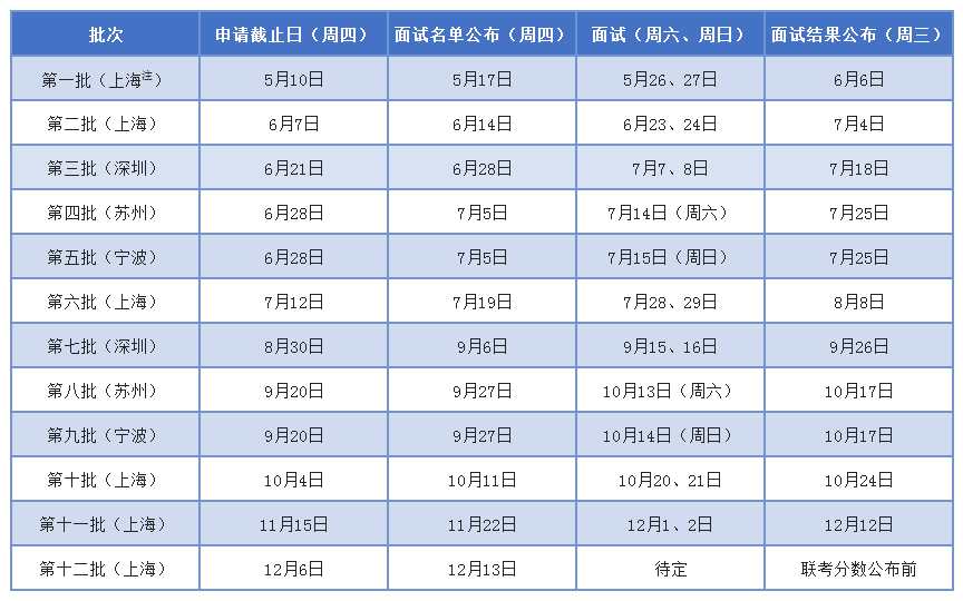 注2:同濟(jì)-曼徹斯特雙學(xué)位MBA項(xiàng)目、同濟(jì)-凱斯西儲(chǔ)MBA/金融碩士雙學(xué)位項(xiàng)目實(shí)行每月滾動(dòng)面試(具體安排請(qǐng)留意MBA中心網(wǎng)站及項(xiàng)目組通知);