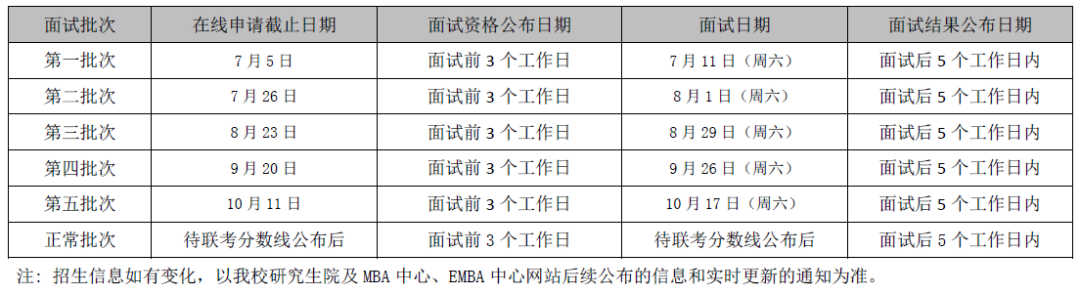 3.在提前批次招生工作階段,申請全日制項目的考生只有一次參與提前批次招生的機會,申請非全日制子項目的考生將擁有多次參與提前批次招生的機會(創(chuàng)新創(chuàng)業(yè)MBA實驗班除外)。未參與提前批次招生的考生可直接參加正常批次招考。