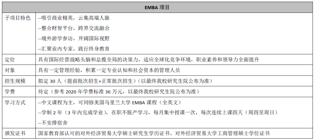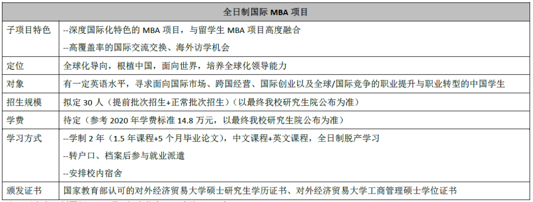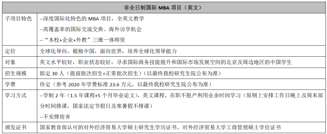 1.開放五個子項目招生:全日制國際MBA項目、非全日制國際MBA項目(英文)、非全日制MBA項目(中文)、EMBA項目和創(chuàng)新創(chuàng)業(yè)MBA實驗班。