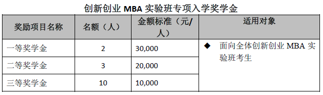 類別三、創(chuàng)新創(chuàng)業(yè)MBA實驗班專項入學獎學金