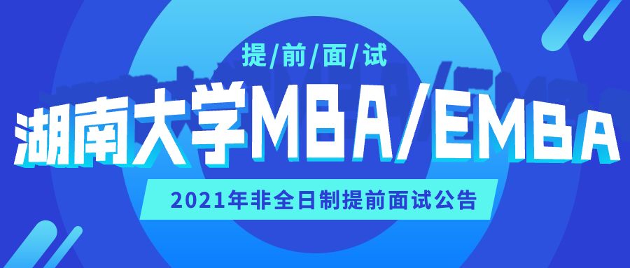 以上就是“2021年MBA提前面試 | 湖南大學(xué)2021MBA提前面試已開啟!”的全部內(nèi)容!更多考研信息持續(xù)更新,多多關(guān)注!祝考研順利,馬到成功!