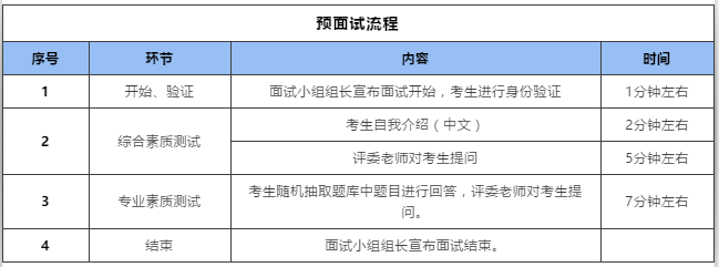3. 考生首先進(jìn)行2分鐘中文自我介紹,然后進(jìn)行回答及自由問答環(huán)節(jié),最后完成面試。