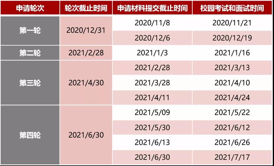 2) 條件錄取 準(zhǔn)備或已預(yù)約參加雅思/托福等標(biāo)準(zhǔn)化考試的申請人如通過審核資格,可以先參加面試筆試,通過面試筆試后將收到“條件錄取”的結(jié)果。此類申請人須在2021年6月30日之前提交合格的考試成績以獲得正式錄取資格。