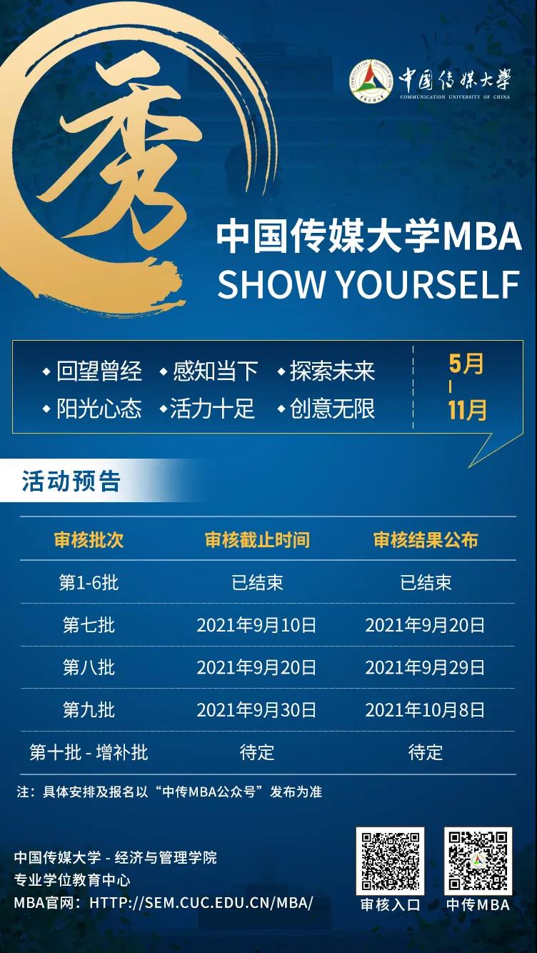 導(dǎo)讀:2022MBA提前面試正在進(jìn)行中,小編整理了“2022MBA提前面試:中傳MBA審核第7-9批正式開(kāi)啟,希望對(duì)各位考生有幫助!