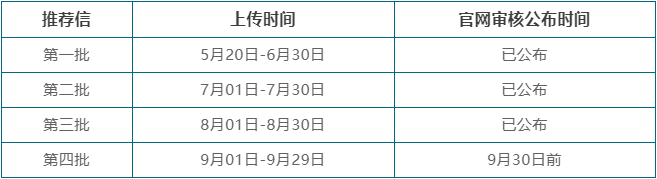 推薦信上傳時(shí)間及官網(wǎng)公布時(shí)間如下: