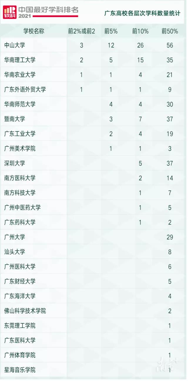 同樣表現(xiàn)不俗的高校還有廣州大學(xué)、廣東工業(yè)大學(xué)、南方醫(yī)科大學(xué),3所學(xué)校上榜學(xué)科數(shù)分別達(dá)到了29個(gè)、19個(gè)、14個(gè)。