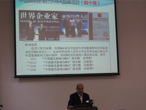2012年4月22日下午,北京理工大學(xué)2013年mba說(shuō)明會(huì)在北京理工大學(xué)主樓241會(huì)議室正式舉行,MBA中心主任周畢文博士親臨現(xiàn)場(chǎng),為學(xué)員講解關(guān)于北京理工大學(xué)13年最新招生政策和相關(guān)事項(xiàng)。社科賽斯教育集團(tuán)總裁甄誠(chéng),校長(zhǎng)趙新應(yīng)北京理工大學(xué)邀請(qǐng)也參加了此次會(huì)議,并就1月份的聯(lián)考給考生提供了大量建議和復(fù)習(xí)方法。