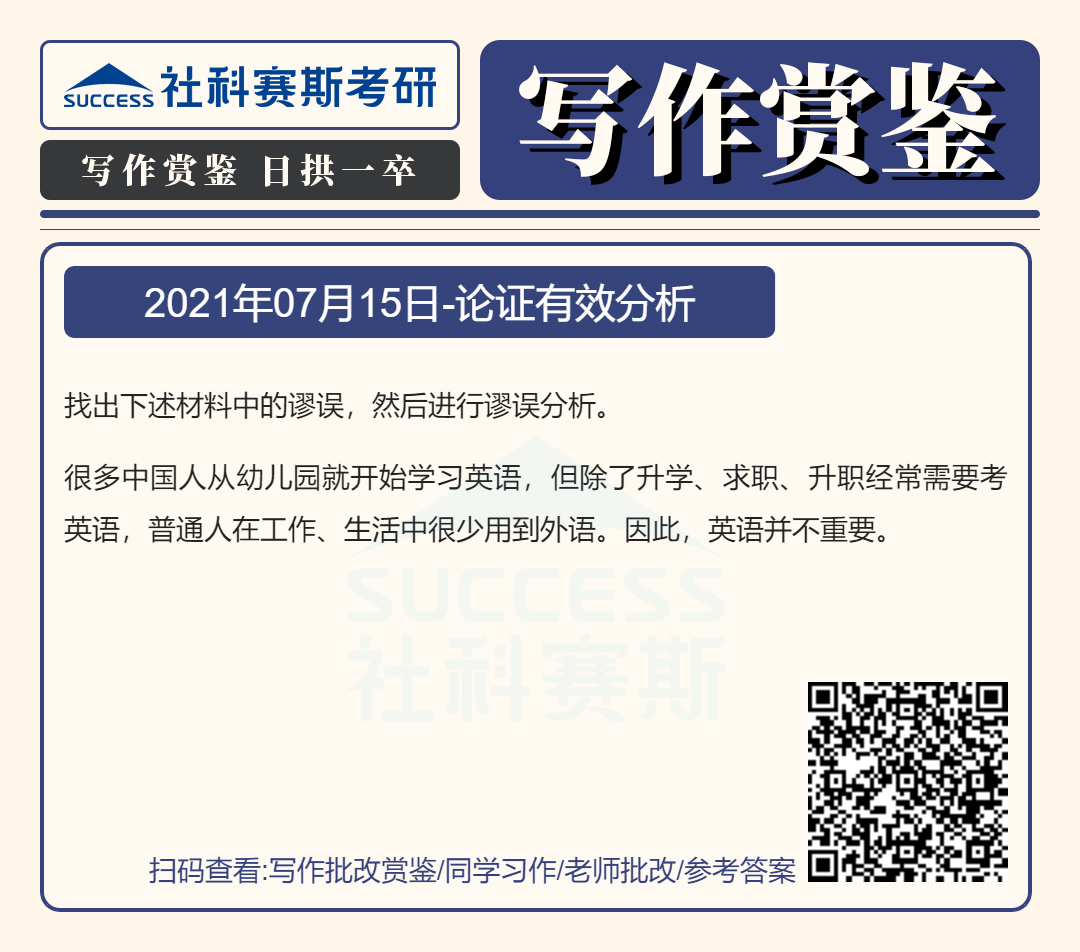 以上就是“2022MBA寫作:2022MBA聯(lián)考寫作批改賞鑒及參考答案(7月15日)”的全部?jī)?nèi)容,更多寫作精選習(xí)題,請(qǐng)持續(xù)關(guān)注社科賽斯MBA備考網(wǎng)!