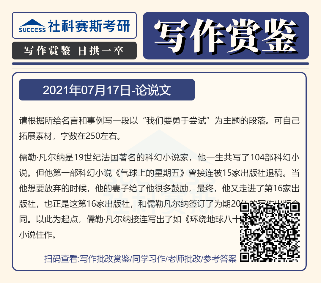 導(dǎo)讀:寫作題型是管理類聯(lián)考考試中的必考題型,也是MBA聯(lián)考復(fù)習(xí)中的重要部分,社科賽斯MBA備考網(wǎng)小編整理了“2022MBA寫作:2022MBA聯(lián)考寫作批改賞鑒及參考答案(7月17日)”的內(nèi)容,希望能對(duì)廣大考生有所幫助。