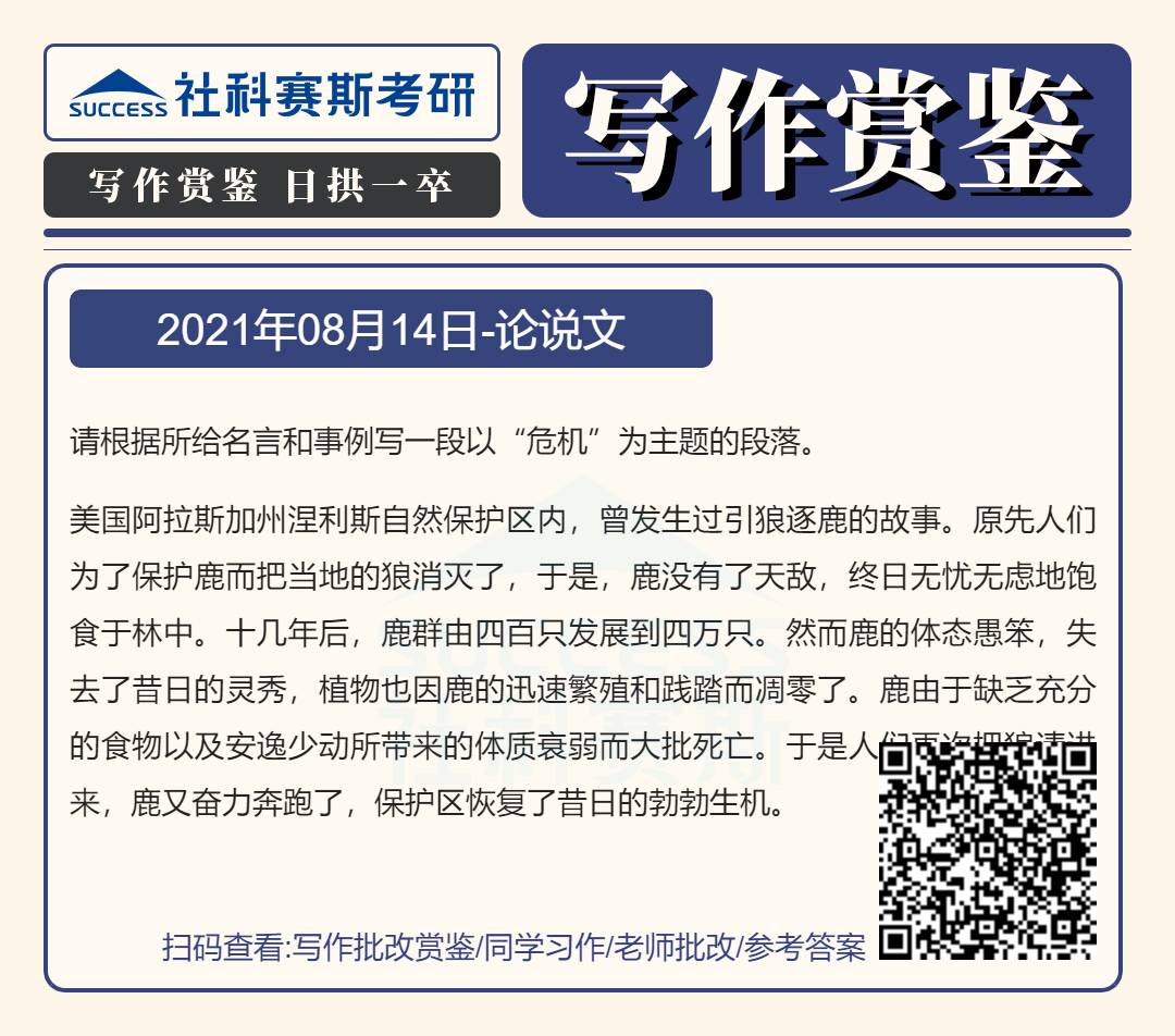 以上就是“2022MBA寫作:2022MBA聯(lián)考寫作批改賞鑒及參考答案(8月14日)”的全部內(nèi)容,更多寫作精選習(xí)題,請持續(xù)關(guān)注社科賽斯MBA備考網(wǎng)!