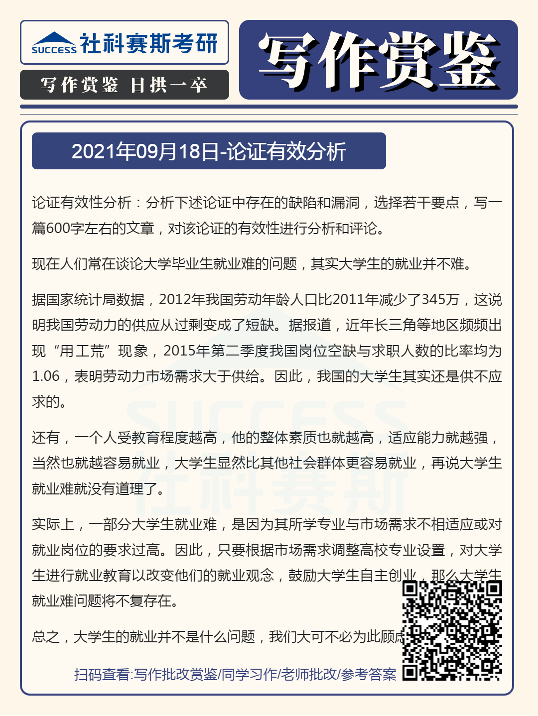 以上就是“2022MBA寫作:2022MBA聯(lián)考寫作批改賞鑒及參考答案(9月18日)”的全部內(nèi)容,更多寫作精選習(xí)題,請持續(xù)關(guān)注社科賽斯MBA備考網(wǎng)!
