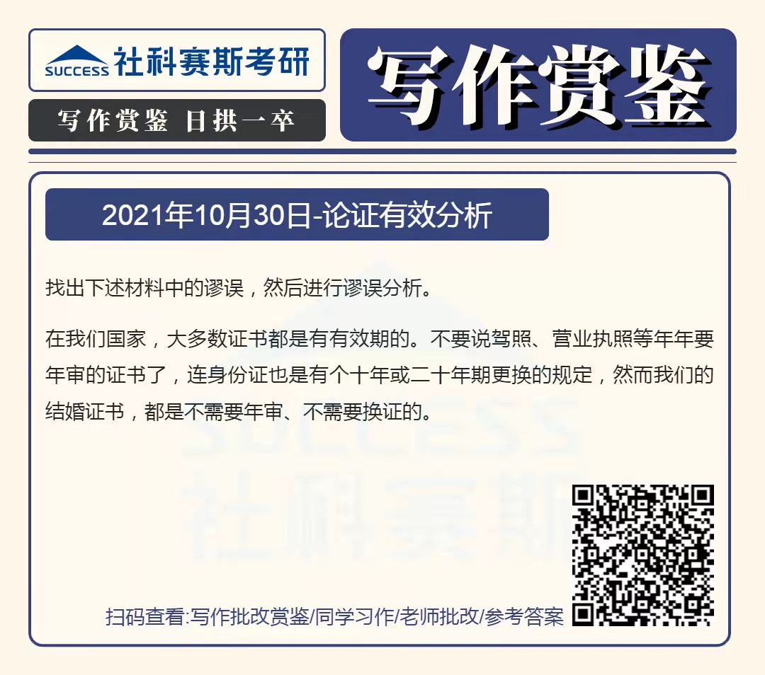 以上就是“2022MBA寫作:2022MBA聯(lián)考寫作批改賞鑒及參考答案(10月30日)”的全部?jī)?nèi)容,更多寫作精選習(xí)題,請(qǐng)持續(xù)關(guān)注社科賽斯MBA備考網(wǎng)!