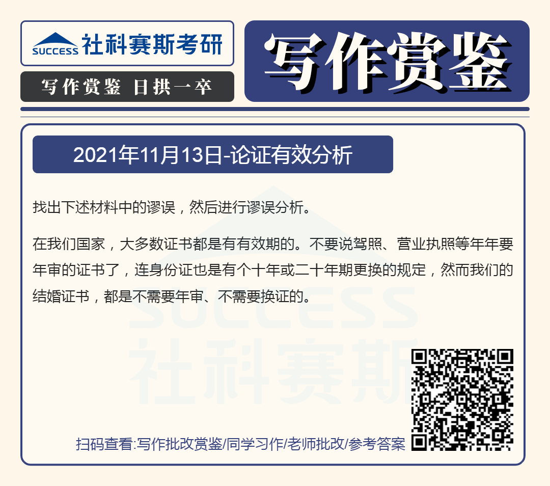以上就是“2022MBA寫作:2022MBA聯(lián)考寫作批改賞鑒及參考答案(11月13日)”的全部內(nèi)容,更多寫作精選習(xí)題,請持續(xù)關(guān)注社科賽斯MBA備考網(wǎng)!