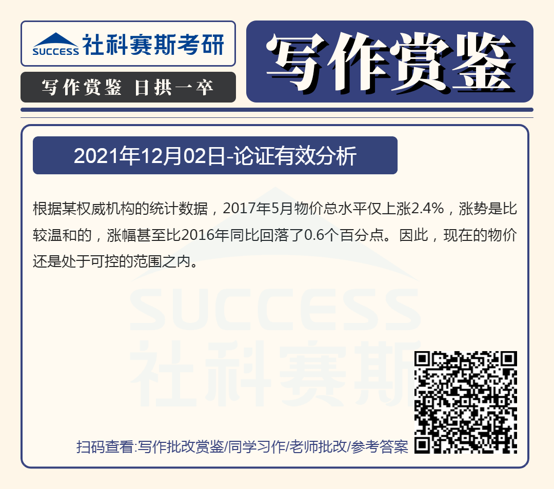 以上就是“2022MBA寫作:2022MBA聯(lián)考寫作批改賞鑒及參考答案(12月2日)”的全部內(nèi)容,更多寫作精選習題,請持續(xù)關(guān)注社科賽斯MBA備考網(wǎng)!