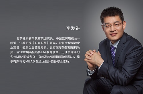 嘉賓簡(jiǎn)介:現(xiàn)任北京社科賽斯教育集團(tuán)校長(zhǎng),中國(guó)教育電視臺(tái)一頻道、江蘇衛(wèi)視《職來(lái)職往》嘉賓。曾任大型制造企業(yè)高管,資深企業(yè)管理專家,具有深厚的管理知識(shí)功底。自2003年起涉足MBA教育領(lǐng)域,歷任京津兩地名校MBA面試考官,有較高的管理潛質(zhì)挖掘能力,能夠有效幫助MBA學(xué)生全面提升自身綜合素質(zhì)。