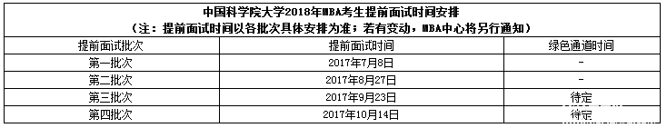 經(jīng)中國科學(xué)院大學(xué)MBA招生工作領(lǐng)導(dǎo)小組審核批準(zhǔn),將于2017年7月開始進(jìn)行2018年MBA考生提前面試工作,現(xiàn)將提前面試安排公布如下: