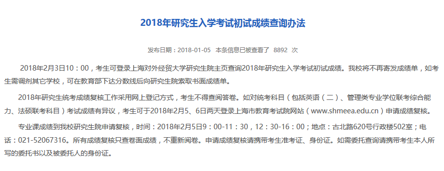 以下是上海對外經(jīng)貿(mào)大學(xué),2018年全國碩士研究生考試成績查詢?nèi)肟?/span>(http://www.suibe.edu.cn/yjsy/_t360/main.psp)