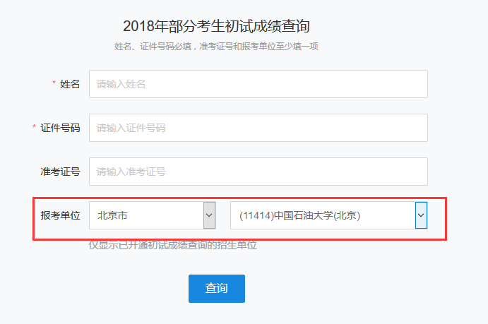 以下是中國(guó)石油大學(xué)(北京),2018年全國(guó)碩士研究生考試成績(jī)查詢?nèi)肟?/span>(https://yz.chsi.com.cn/apply/cjcx/)