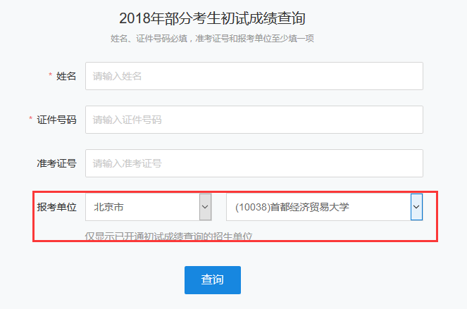 以下是首都經濟貿易大學,2018年全國碩士研究生考試成績查詢入口(https://yz.chsi.com.cn/apply/cjcx/)