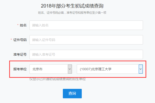 以下是北京理工大學(xué),2018年全國碩士研究生考試成績查詢?nèi)肟?/span>(https://yz.chsi.com.cn/apply/cjcx/)