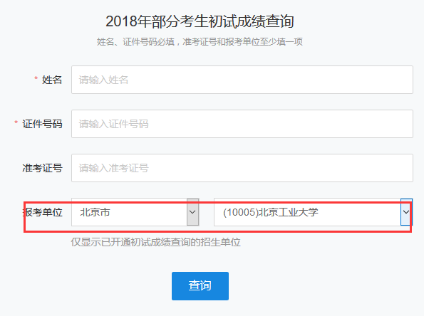 以下是北京工業(yè)大學(xué),2018年全國(guó)碩士研究生考試成績(jī)查詢(xún)?nèi)肟?/span>(https://yz.chsi.com.cn/apply/cjcx/)