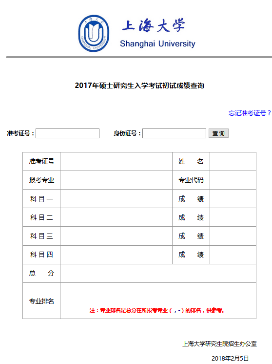以下是上海大學(xué),2018年全國碩士研究生考試成績查詢?nèi)肟?/span>(http://202.120.117.108/CJ/ZSQuery.asp?ID=1)