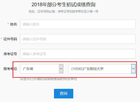 以下是廣東財(cái)經(jīng)大學(xué),2018年全國碩士研究生考試成績查詢?nèi)肟?/span>(https://yz.chsi.com.cn/apply/cjcx/)