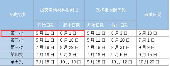 4.根據(jù)歷年情況,每個(gè)批次都可能出現(xiàn)下列情況:在提交材料或者選擇批次的截止日期前,面試名額已滿。因此,提醒考生提前計(jì)劃,越早提交材料,選到目標(biāo)批次的可能性越大。