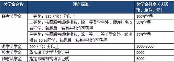 3.校友獎學金:考生在規(guī)定時間段提出申請并提供華東理工大學畢業(yè)證書后評定;