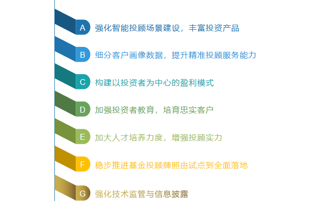 最后,報告對我國智能投顧發(fā)展趨勢做出預(yù)判,明確智能投顧將依托其低成本、高效率以及多元化場景、便捷化服務(wù)成為財富管理業(yè)務(wù)發(fā)展的重要手段,且隨著智能化程度不斷提高,科技賦能程度不斷加深,智能投顧將通過“人+機(jī)器”模式為投資者提供有溫度的全生命周期的財富管理服務(wù),通過全智能模式逐漸覆蓋更多長尾客戶,有效提高我國居民財富管理水平。同時,智能投顧市場也將形成少數(shù)大型綜合智能投顧平臺、大量差異化精品投顧平臺以及全智能投顧平臺共同發(fā)展的格局。