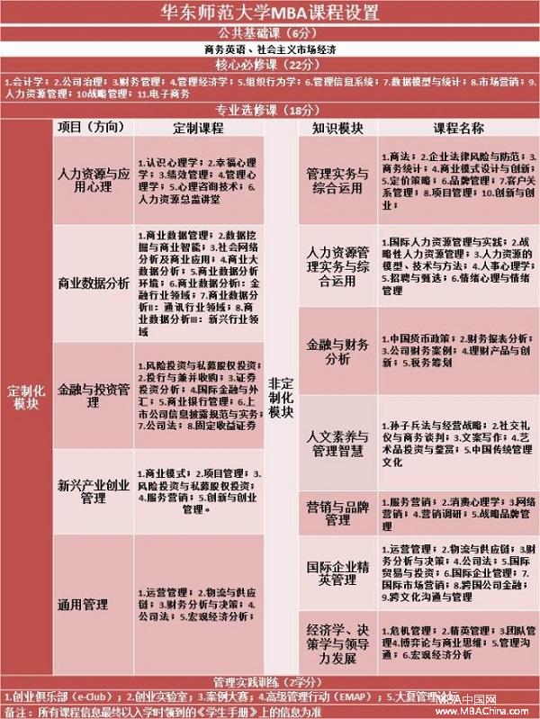 2010年華東師范大學(xué)MBA項(xiàng)目入選教育部批準(zhǔn)的全國(guó)18所MBA綜合改革試點(diǎn)院校,并在2013年以優(yōu)異成績(jī)通過(guò)教育部和國(guó)務(wù)院學(xué)位辦驗(yàn)收。