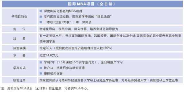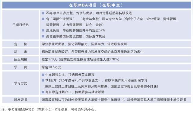 注: 招生信息如有變化,以對(duì)外經(jīng)貿(mào)大學(xué)研究生院及MBA中心、EMBA中心網(wǎng)站后續(xù)公布的信息和實(shí)時(shí)更新的通知為準(zhǔn)。