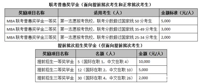 設(shè)立MBA聯(lián)考普惠獎(jiǎng)學(xué)金及提前批次招生獎(jiǎng)學(xué)金,以資鼓勵(lì)報(bào)考對(duì)外經(jīng)貿(mào)大學(xué)MBA項(xiàng)目并在全國(guó)聯(lián)考分?jǐn)?shù)成績(jī)優(yōu)秀、提前批次招生面試表現(xiàn)出色的考生,兩種類別的獎(jiǎng)學(xué)金可以累加獲得。僅面向國(guó)際MBA項(xiàng)目(在職英文)和在職MBA項(xiàng)目(在職中文)兩個(gè)子項(xiàng)目,不含國(guó)際MBA項(xiàng)目(全日制)和EMBA項(xiàng)目。