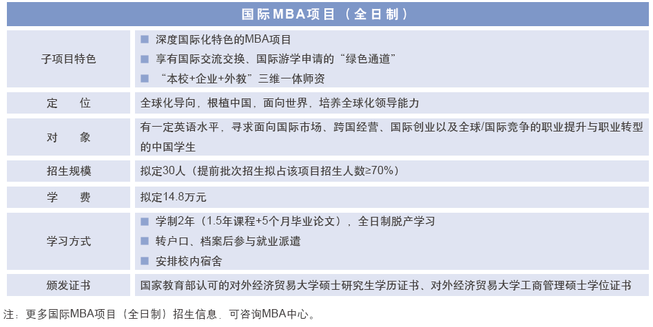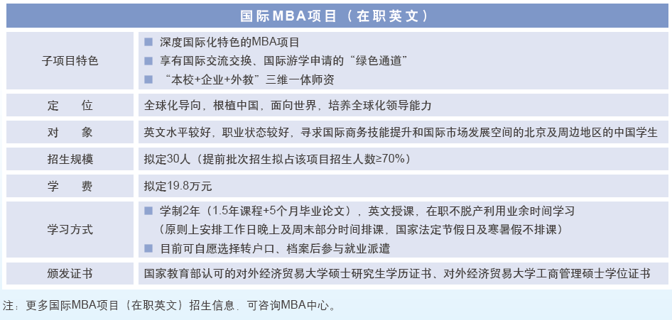2018年對(duì)外經(jīng)濟(jì)貿(mào)易大學(xué)MBA項(xiàng)目招生政策: