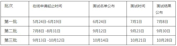 批次在線申請起止時間面試名單公布面試時間面試結(jié)果公布