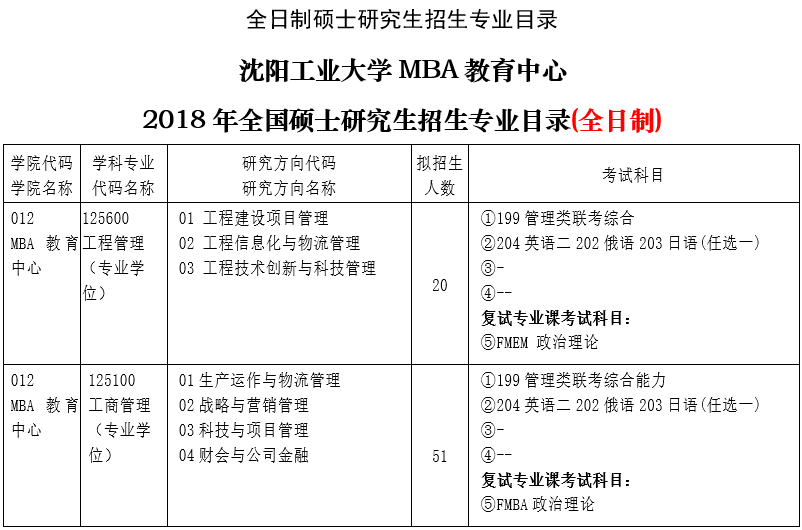 初試地點由報名點統(tǒng)一安排,初試科目見《沈陽工業(yè)大學(xué)2018年全國碩士研究生招生專業(yè)目錄》