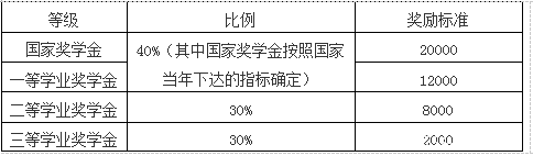 表二:全日制碩士研究生獎(jiǎng)學(xué)金獎(jiǎng)勵(lì)標(biāo)準(zhǔn)(定向除外)