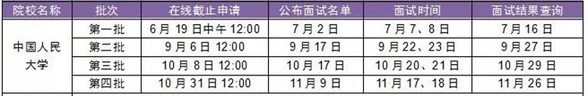 2019年人大商學院MBA招生仍然以提前批面試為主,采取“4+1”方式,即四次提前批面試和一次正常批面試。正常批面試為2019年3月,未能參加提前批面試的考生依然可以通過正常批面試的方式進入人大學習。