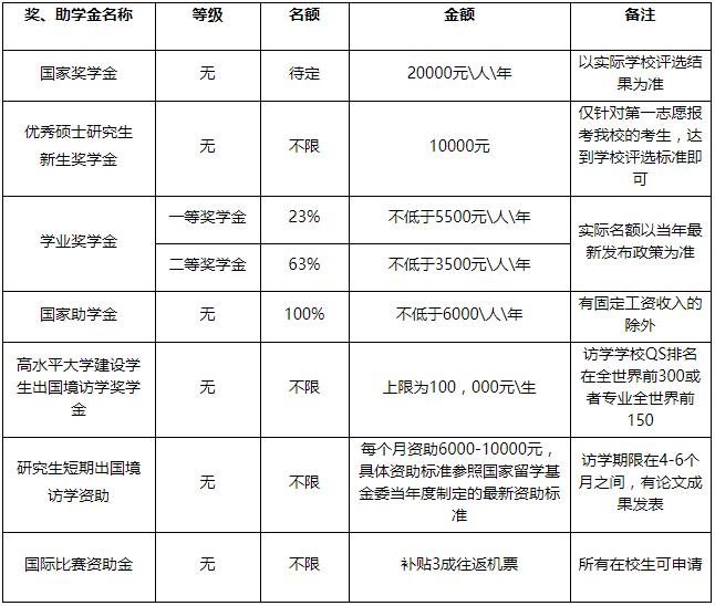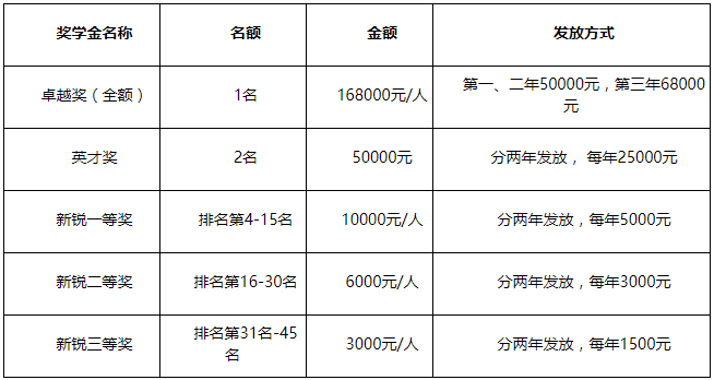 4、以上內(nèi)容僅供參考,具體名額、金額及評(píng)選方式,以當(dāng)年學(xué)校發(fā)布的最新政策條款為準(zhǔn)。